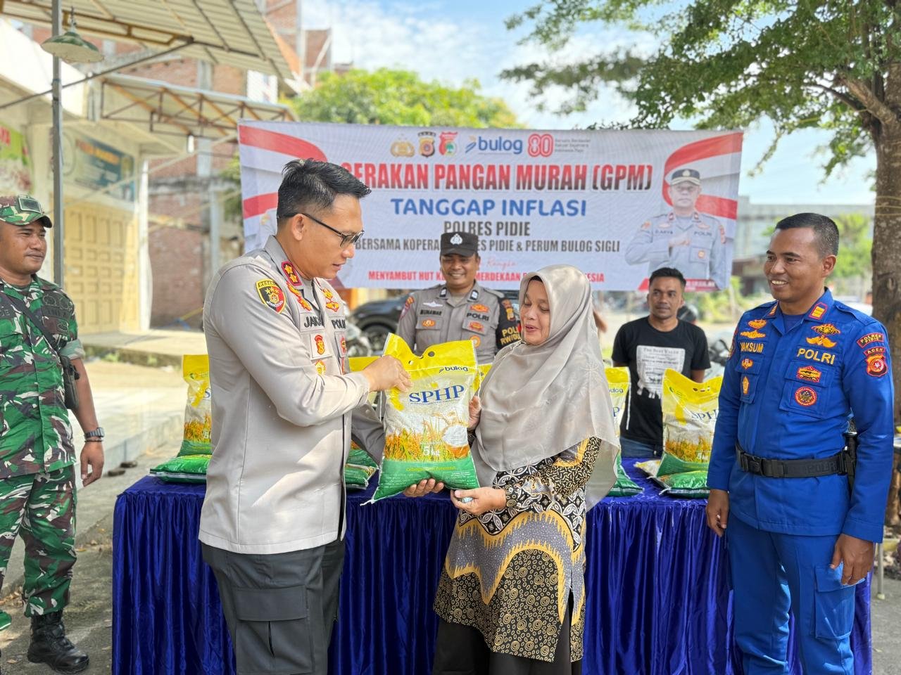 Kapolres Pidie AKBP Jaka Mulyana, SIK, MIK menyampaikan bahwa Polri melalui Koperasi Polres Pidie berkomitmen mendukung program pemerintah dalam pengendalian inflasi dan pemenuhan kebutuhan pokok masyarakat.