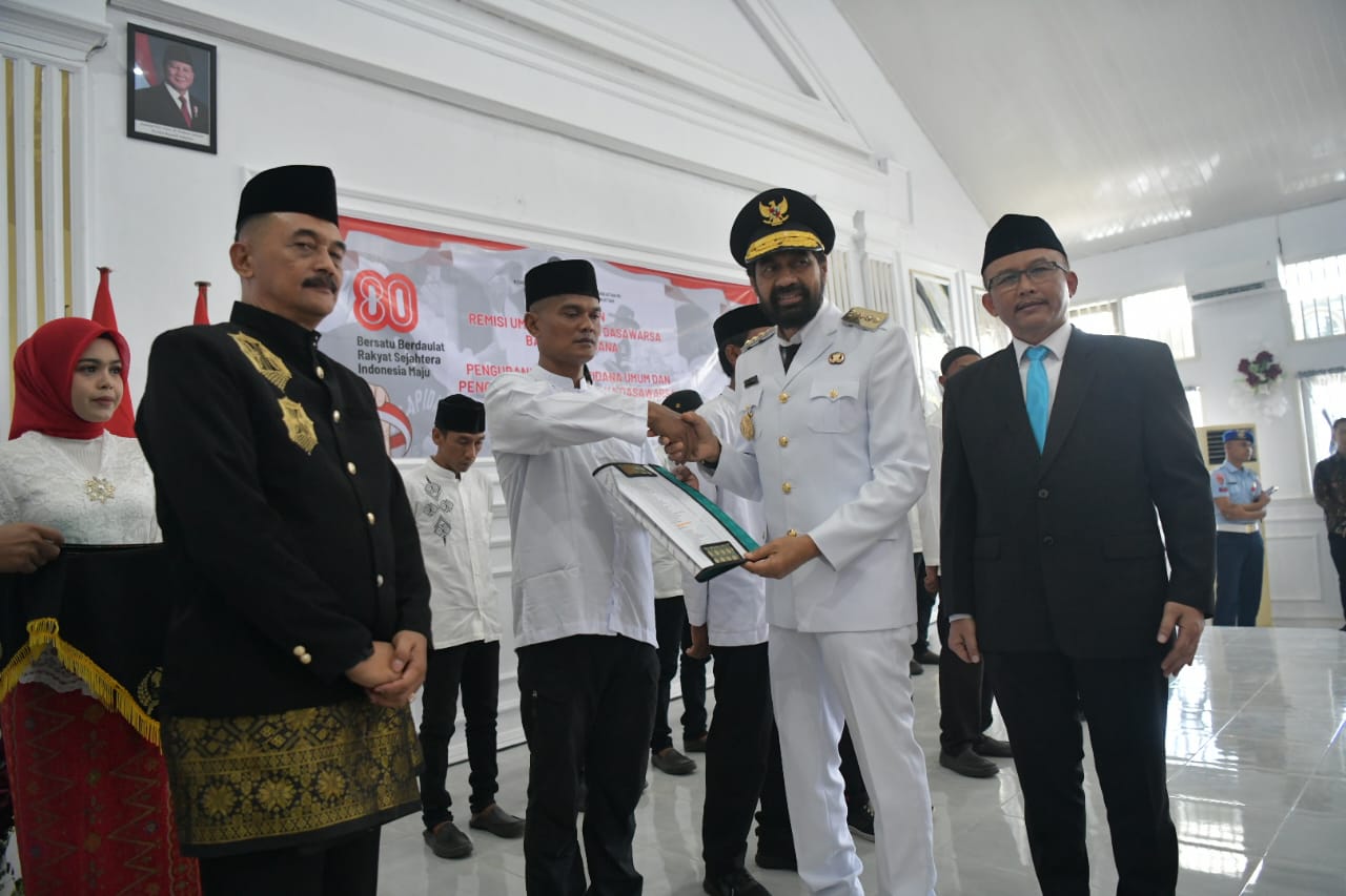Habanusantara.net – Dalam rangka memperingati Hari Ulang Tahun ke-80 Kemerdekaan Republik Indonesia, Gubernur Aceh Muzakir Manaf menyerahkan remisi kepada ribuan narapidana di Lembaga Pemasyarakatan (Lapas) Kelas IIA Banda Aceh, Minggu (17/8/2025).