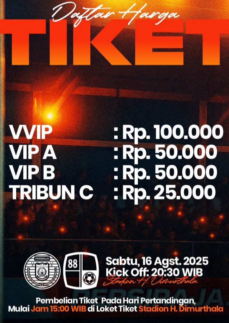 Harga tiket? Panitia sudah umumkan. Mulai dari Rp 25 ribu untuk tribun C. Tribun A dan B dibanderol Rp 50 ribu. Paling mahal, tribun VVIP, Rp 100 ribu.