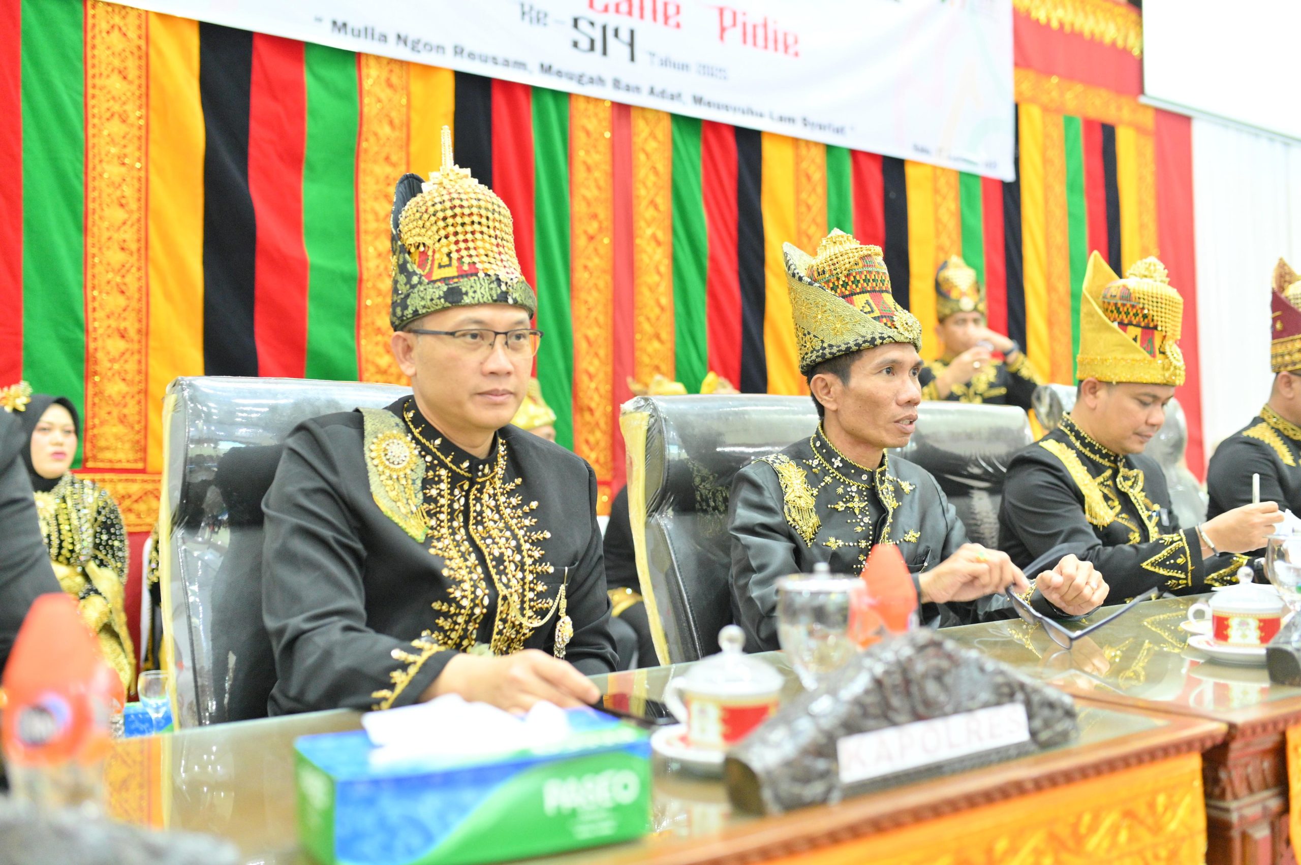 Dalam kesempatan itu, Kapolres Pidie AKBP Jaka Mulyana, SIK, MIK, menyampaikan bahwa penetapan 18 September 1511 M sebagai awal berdirinya Kabupaten Pidie yang dituangkan dalam Qanun Aceh dan Perbup Pidie, adalah momen bersejarah yang menjadi pengingat bagi seluruh masyarakat akan pentingnya menjaga warisan sejarah, adat, dan syariat Islam yang telah lama mengakar di bumi Pidie.