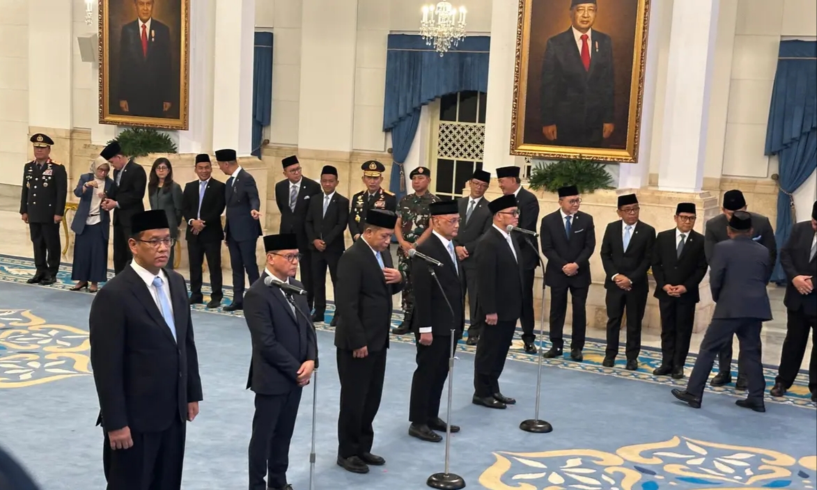 “Atas berbagai pertimbangan, masukan, dan evaluasi yang dilakukan terus-menerus, maka pada sore hari ini Bapak Presiden memutuskan untuk melakukan perubahan susunan Kabinet Merah Putih pada beberapa jabatan kementerian,” kata Prasetyo.