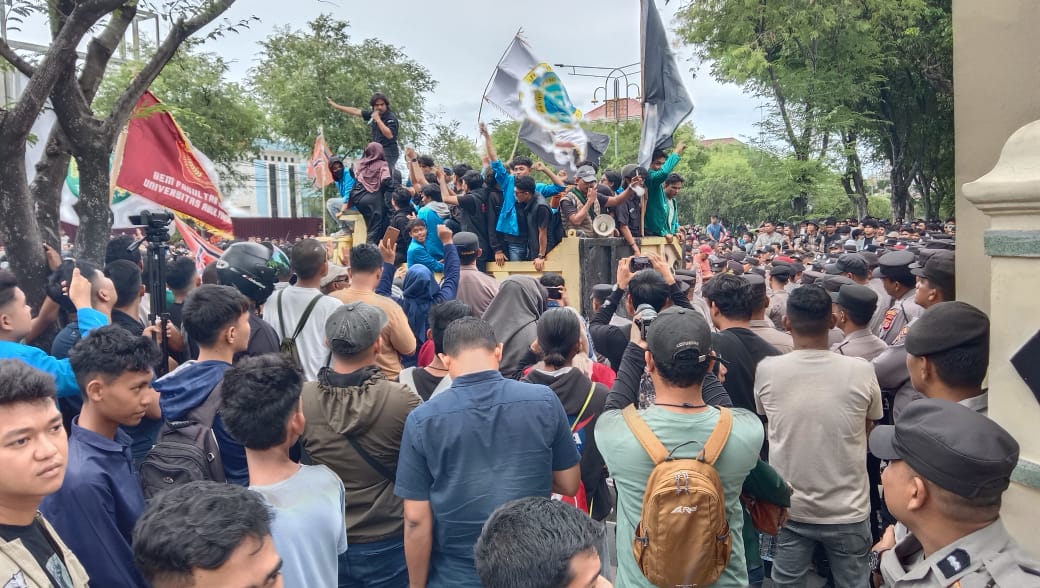 Aksi tersebut dimulai pada pukul 14.00 WIB, yang menunjukkan ribuan massa memadati jalan di depan kantor DPRA dari berbagai arah.