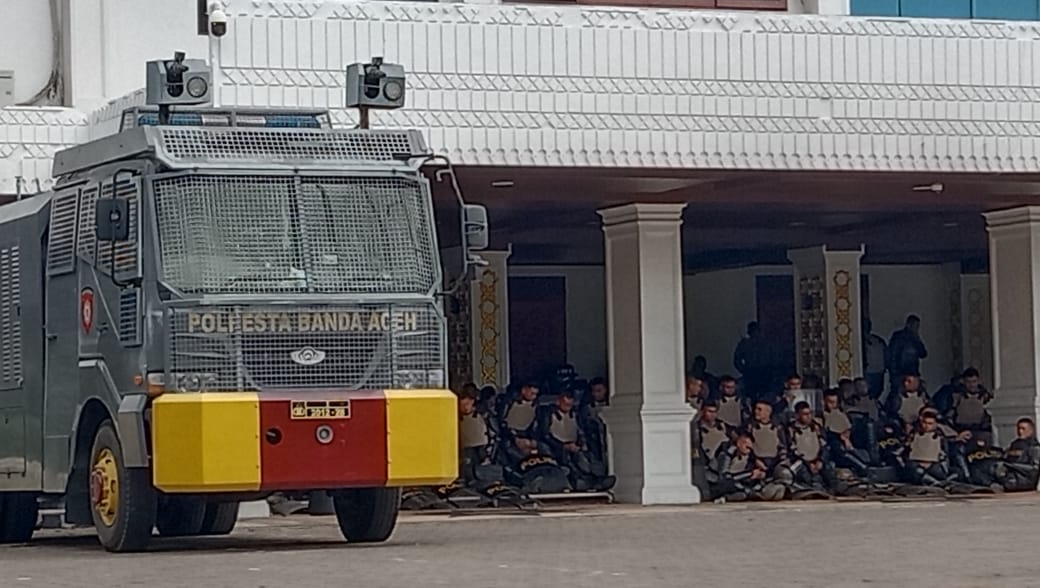 Saat ini, massa masih berkumpul di depan gerbang DPRA karena tidak diizinkan masuk dan menyampaikan orasi di halaman DPRA. Ratusan polisi juga terlihat berjaga-jaga di halaman DPRA.