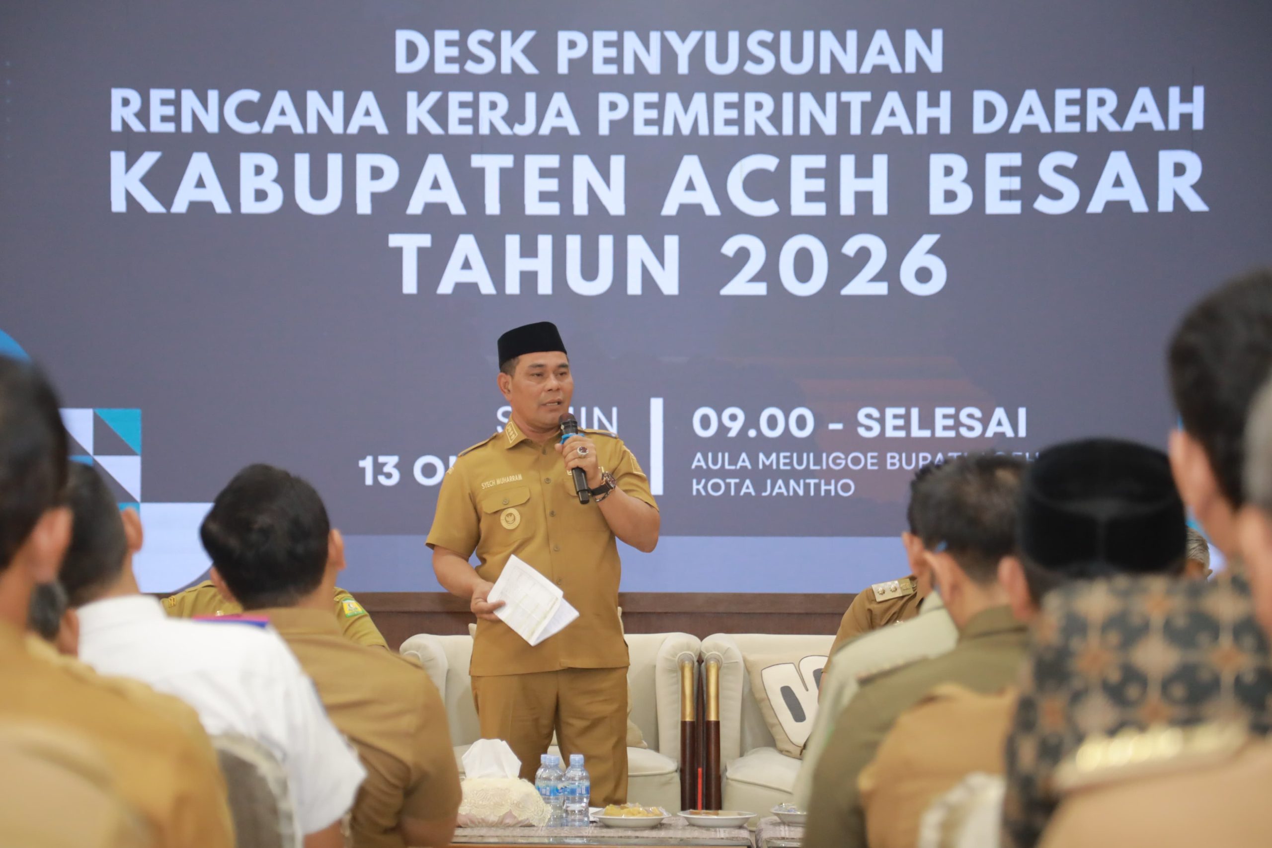 Hal itu disampaikan Syech Muharram saat membuka Presentasi Rencana Kerja Organisasi Perangkat Daerah (OPD) tahun 2026 di Meuligoe Bupati Aceh Besar, Kota Jantho, Senin (13/10/2025).