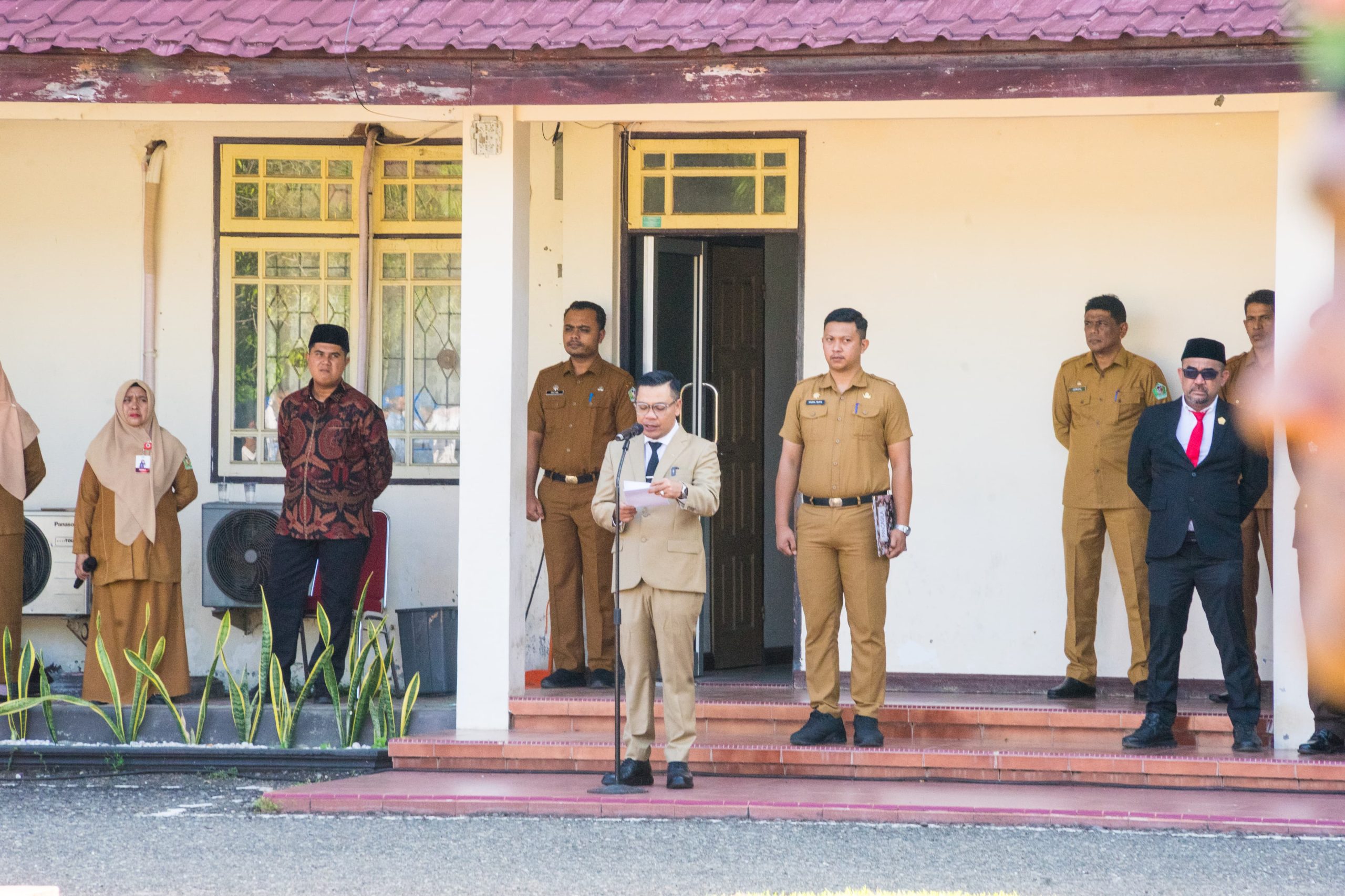 Wakil Bupati Alzaizi bertindak sebagai pembina upacara pada peringatan Hari Sumpah Pemuda ke-97 Tahun 2025 dengan tema Pemuda Pemudi Bergerak Indonesia Bersatu yang berlangsung di Halaman Tengah Kantor Bupati Pidie, Selasa (28/10/2025).