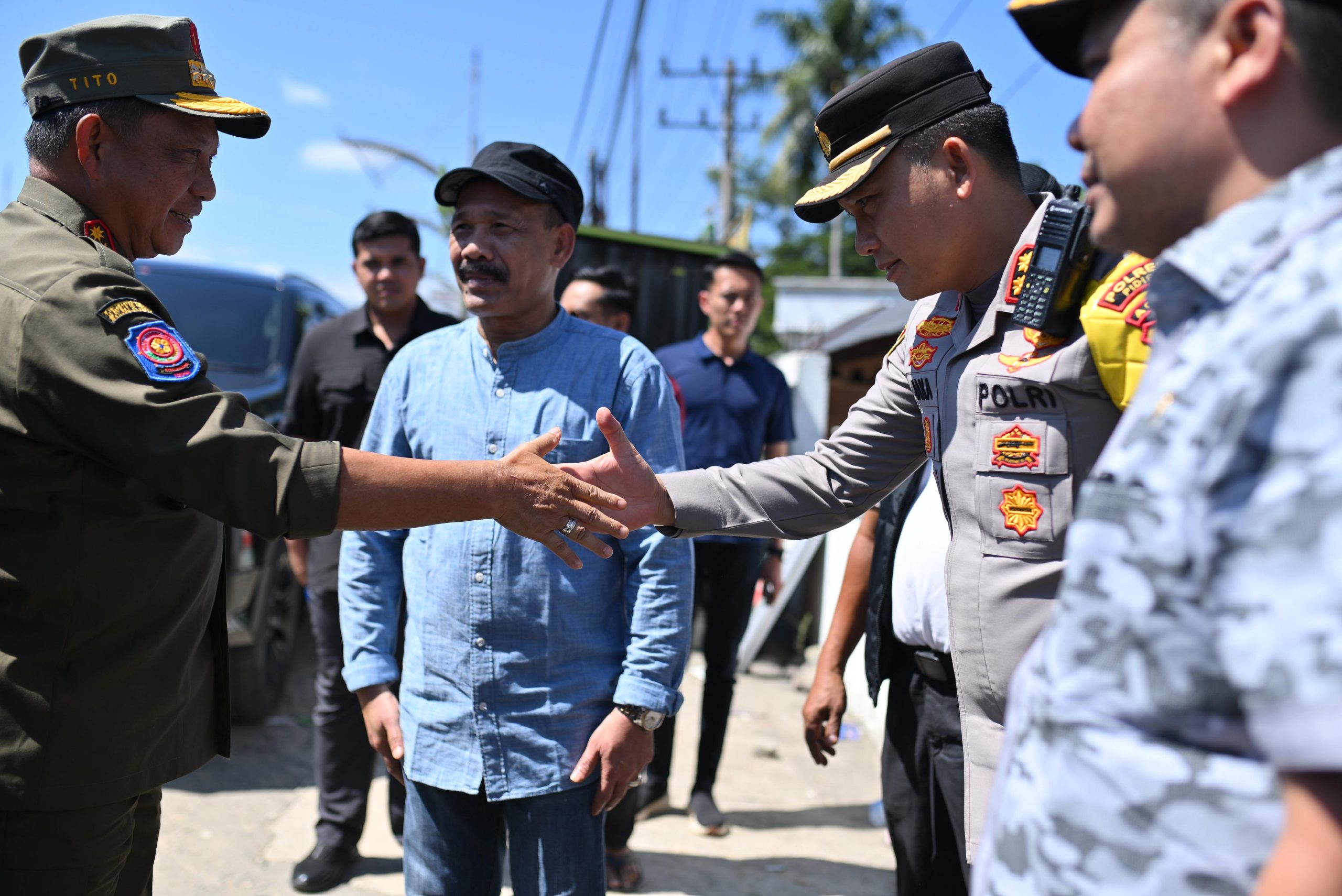 Setibanya di lokasi, Mendagri meninjau pengungsian di Masjid Baitul Azmi Lilmukminin, Kemukiman Jojo, Mutiara Timur. Di sana, Mendagri menyerahkan bantuan sembako kepada masyarakat yang terdampak banjir.