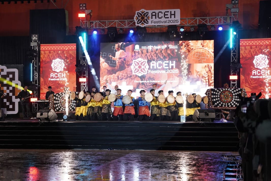 Habanusantara.net — Meski diguyur gerimis, ribuan warga tampak antusias menyaksikan berbagai atraksi seni sekaligus menikmati aneka jajanan dari puluhan tenan kuliner yang dipamerkan pada pembukaan Aceh Festival 2025, di Taman Sultanah Safiatuddin, Banda Aceh, Sabtu (22/11/2025) malam.
