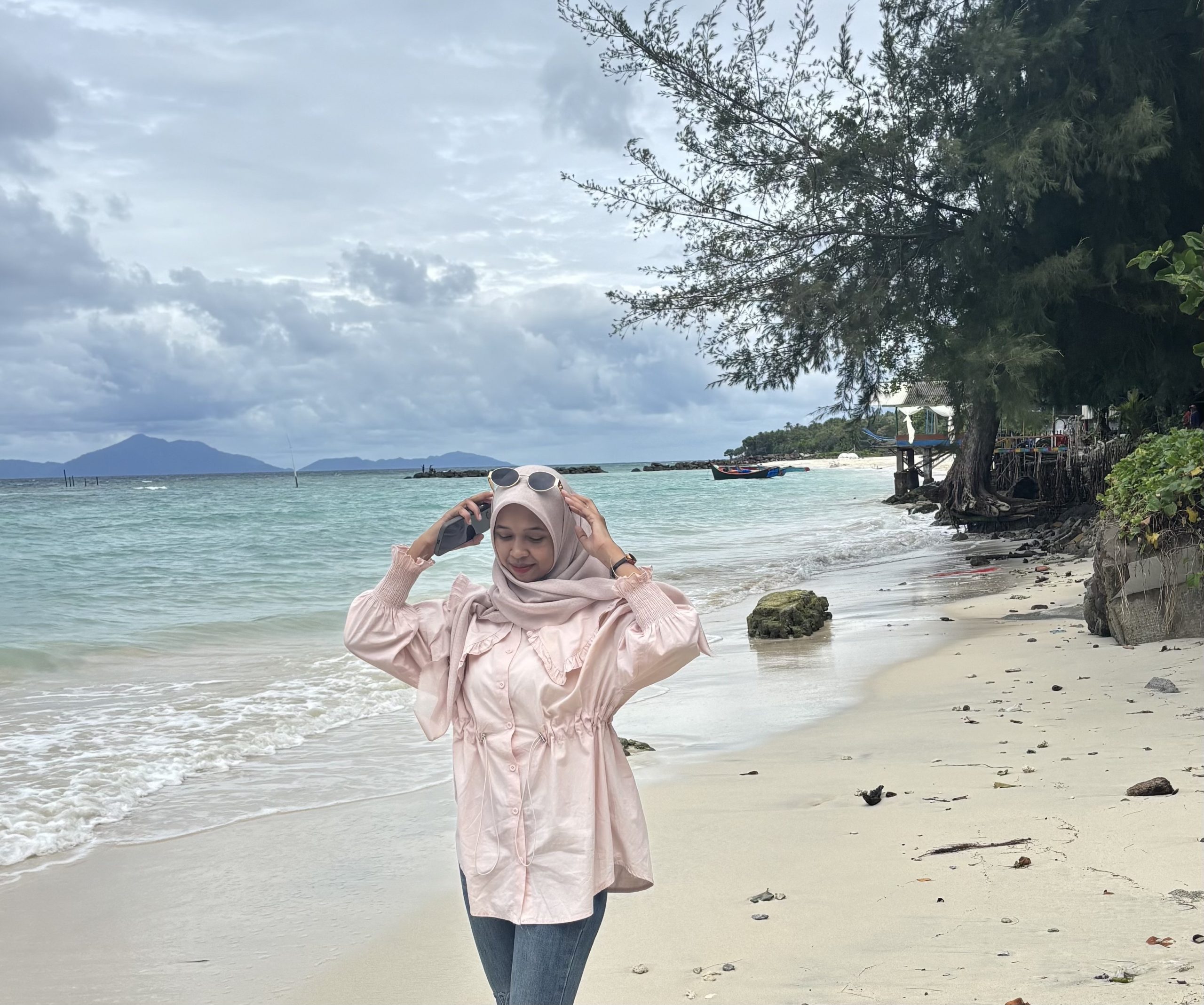Bagi sebagian orang, pantai bukan hanya destinasi wisata — ia adalah ruang refleksi. Seperti yang dirasakan Nadilla (21), mahasiswi asal Banda Aceh, saat ditemui saat sore hari menikmati angin pantai.