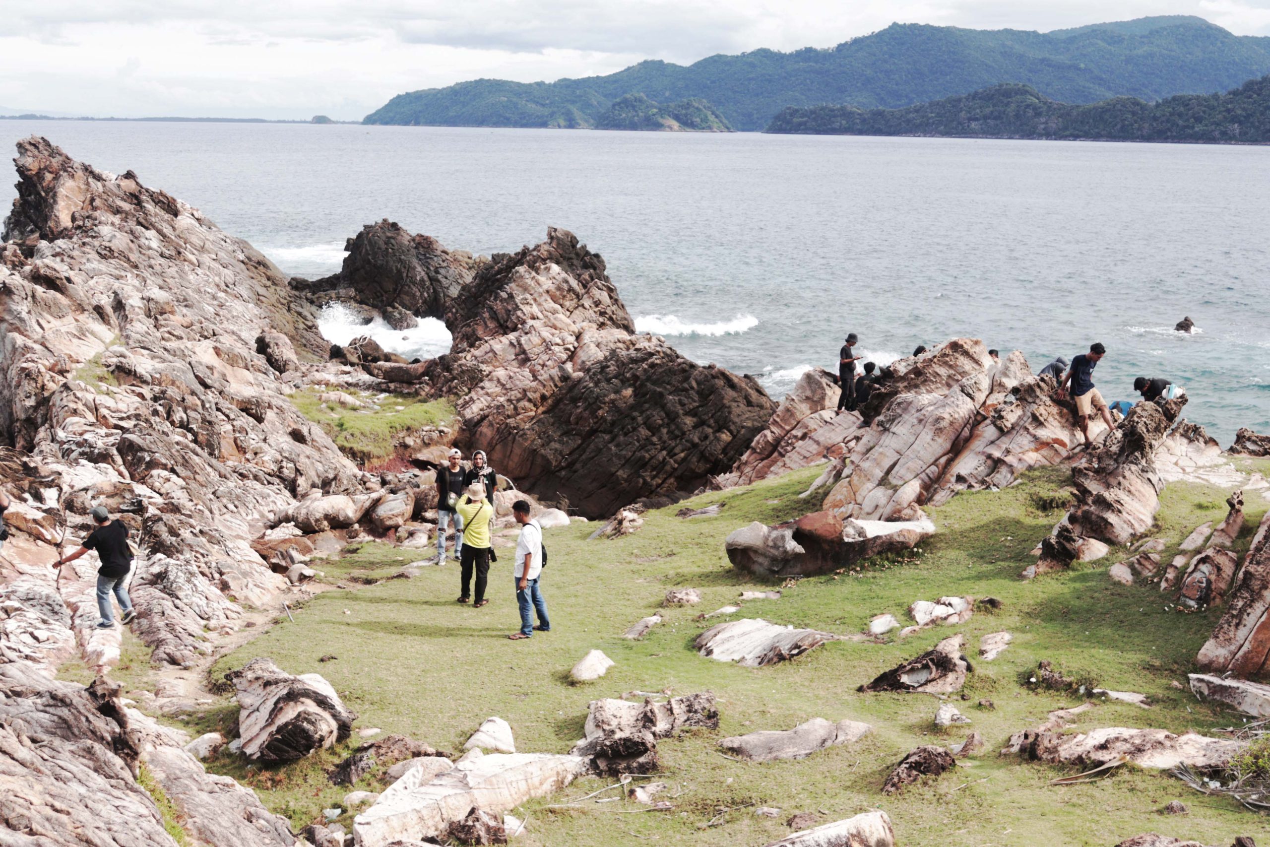 Namun Ujong Eumpee bukan hanya soal karang dan tebing. Menuruni sisi lain dari tanjung ini, terdapat sebuah teluk kecil dengan pasir putih kecokelatan. Terlindungi oleh formasi karang yang kokoh, gelombang di area ini lebih tenang dan bersahabat. Banyak pengunjung memilih duduk santai di atas pasir, menikmati angin laut, atau hanya membiarkan waktu berjalan tanpa tergesa.