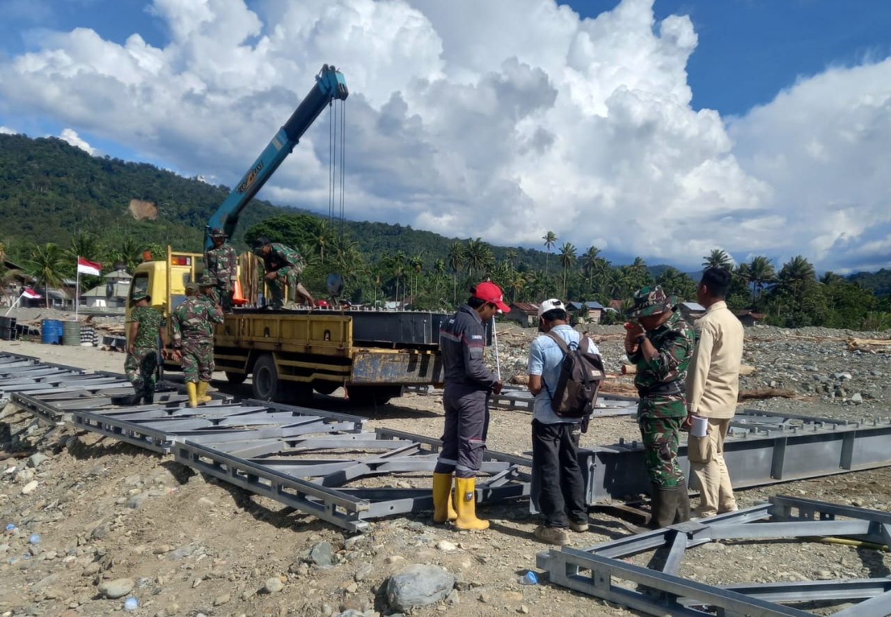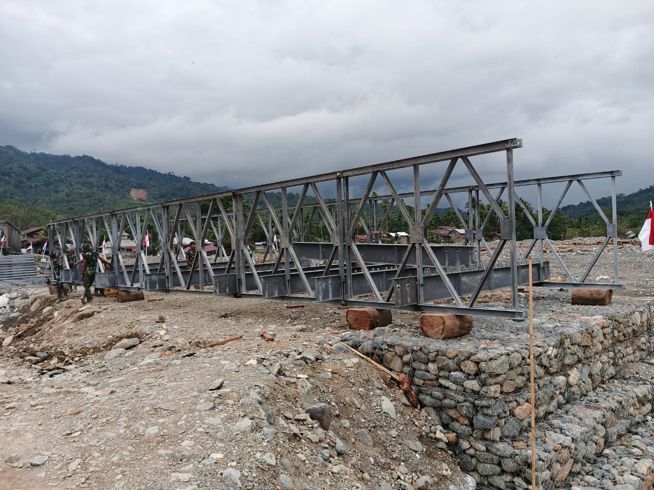 “Saat ini prajurit di lokasi fokus pada pemasangan panel, gelagar lintang, penguatan struktur, serta pemasangan topang silang. Seluruh tahapan tersebut dilakukan untuk memastikan jembatan benar-benar aman dan layak digunakan,” ujar Dandim.