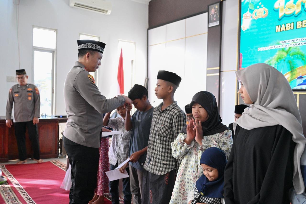 Polres Pidie Polda Aceh melaksanakan peringatan Isra Mikraj Nabi Muhammad SAW 1447 Hijriah/2026 Masehi yang berlangsung di Aula Wira Satya Polres Pidie, Jumat (16/1/2026). Kegiatan ini dirangkaikan dengan pemberian santunan kepada anak yatim sebagai bentuk kepedulian sosial Polri terhadap masyarakat.