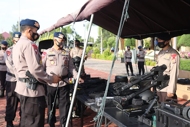 Habanusantara.net, Banda Aceh – Dansat Brimob Polda Aceh Kombes Pol. Selamat Topan, memimpin apel gelar pasukan untuk pengecekan peralatan, kendaraan dan persenjataan Satbrimob Polda Aceh di lapangan apel Mapolda Aceh, Rabu (13/1/2021)
