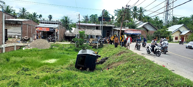 Ditabrak Honda Supra, Mobil L300 Terguling ke Parit, Dua Pengendara Luka Berat